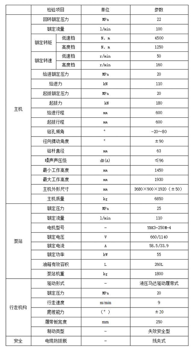 ZDY4500LPS煤矿用履带式全液压坑道钻机参数表