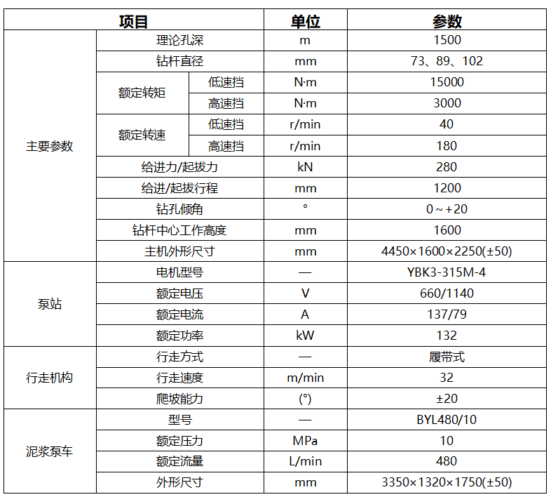 2、采用大功率主机,动力头转矩大、给进机构起拔力大,大大提高了在施工过程中处理抱钻、卡钻等事故的能力;