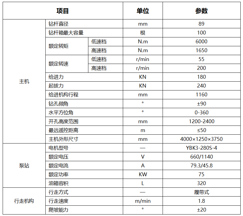 2.国内首创全方位自动钻机,钻机倾角、方位角、水平开孔高度可自动调节,调节范围大、操作方便安全。